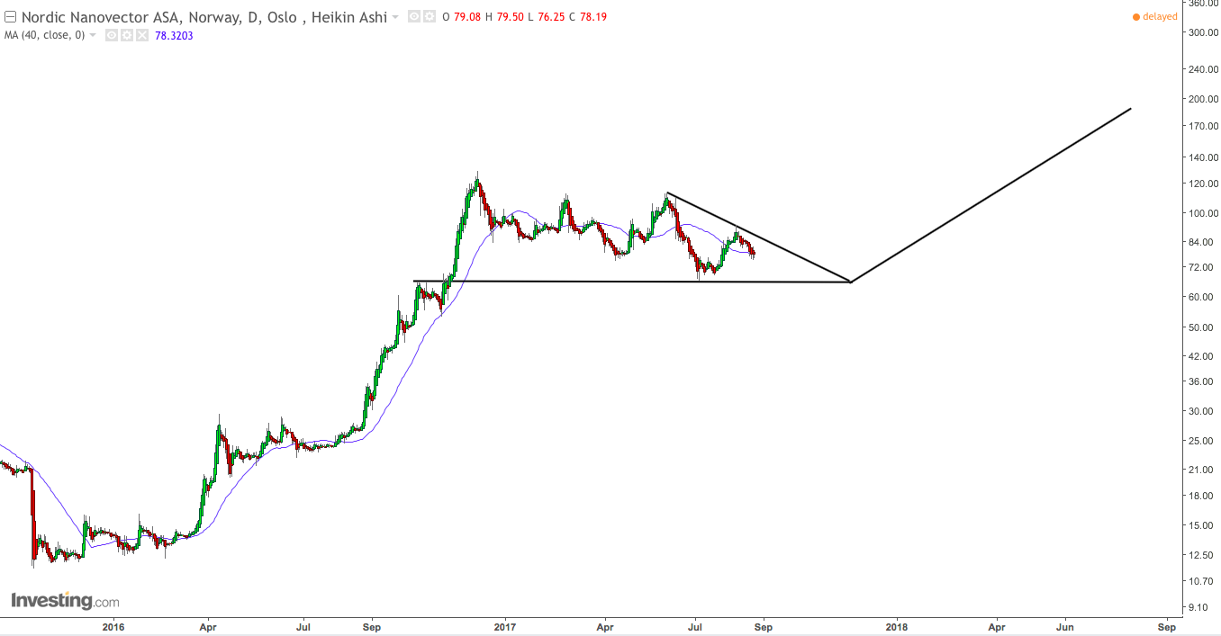 Finner jag ett fundamentalt sterkt selskap, lik NANO, så kjøper jag om aksjen bryter opp, og jag kjøper rekylen visst aksjen bryter ned.