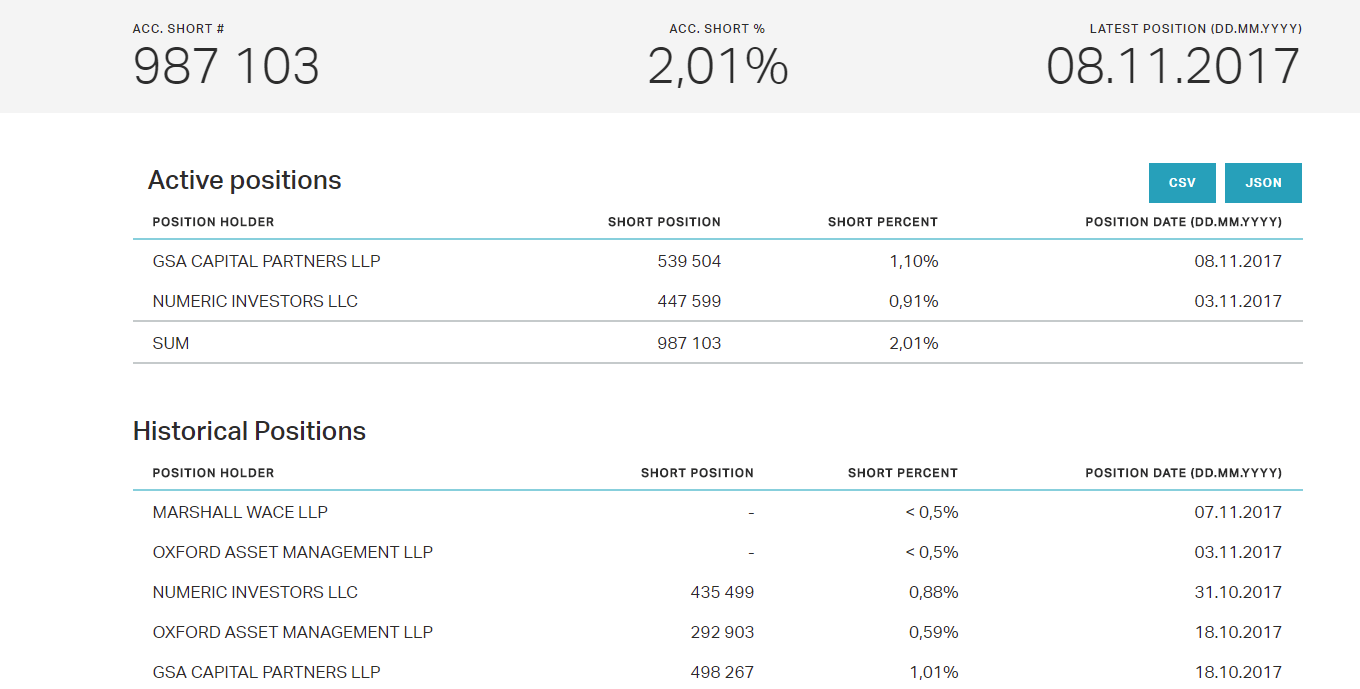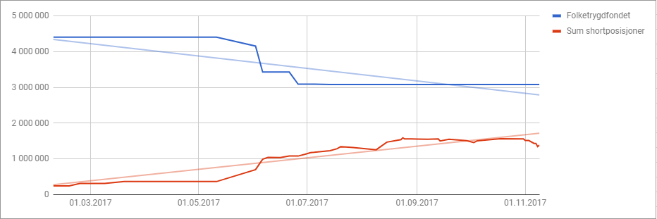 Jeg gjorde et eksperiment og satte 200.000 aksjer short på de to aktørene som er under terskelverdien, istedet for 0, for en total short på 1 387 103 istedet for 987 103 som står i registeret nå.