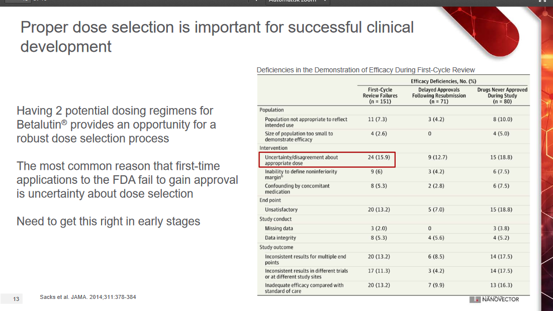 Jeg har aldri vært kritisk til ideen om to doseringer i paradigme, eller til hvorfor man skulle teste 20/100 videre når man har 15/40 “i lomma”, men skjønner enda bedre nå hvorfor dette er veldig viktig. Jeg tenker at sjansen for å få innvilget CMA er nokså liten, siden veldig få medisiner får den muligheten. Jeg kan se for meg at robust data på dosevalg øker den sjansen et halvt knepp.