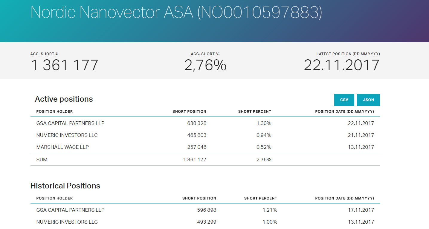 Vi antar det er +1 dag delay. Dvs at short som øker/miner på listene idag egentlig er endret igår.