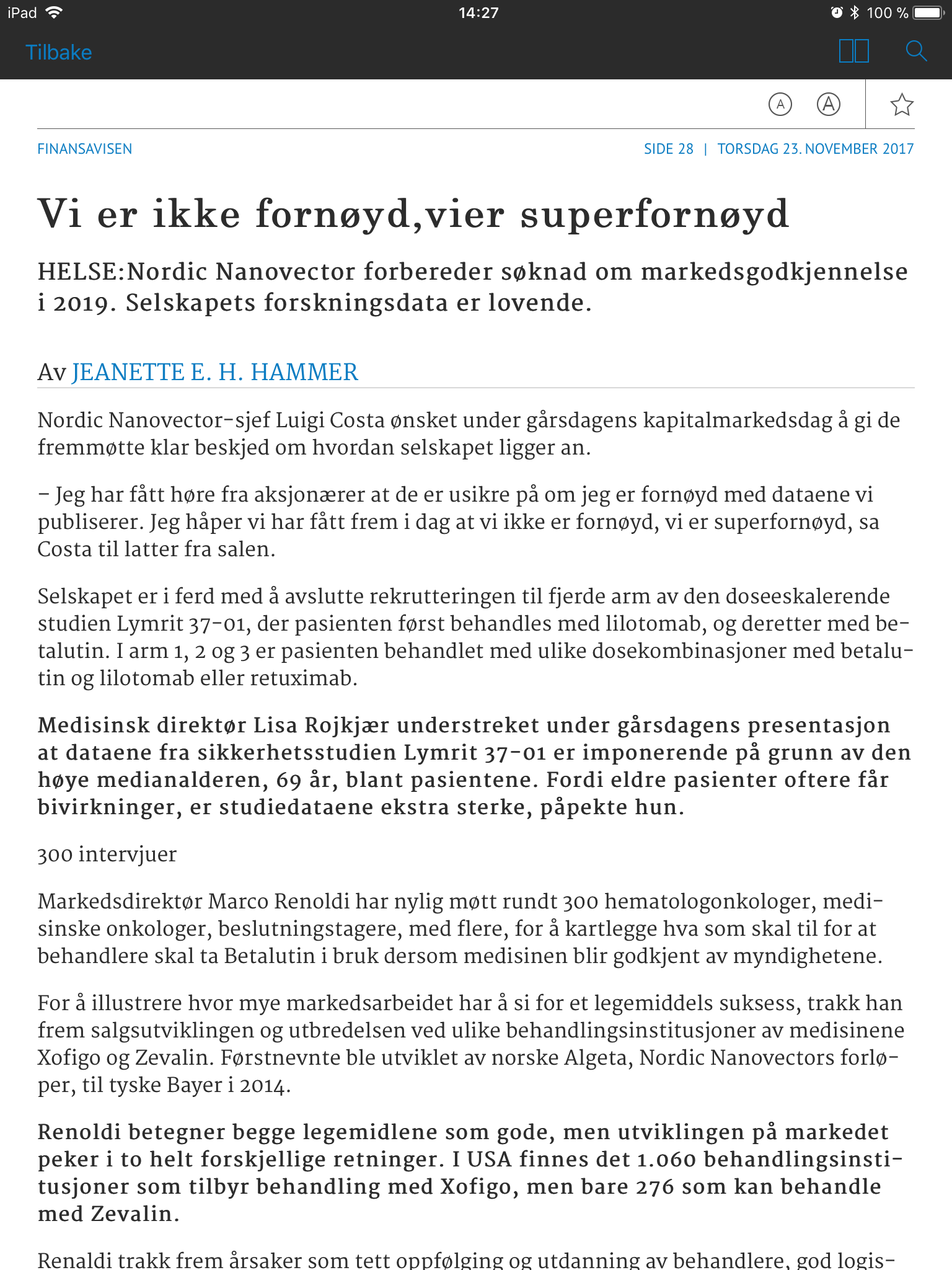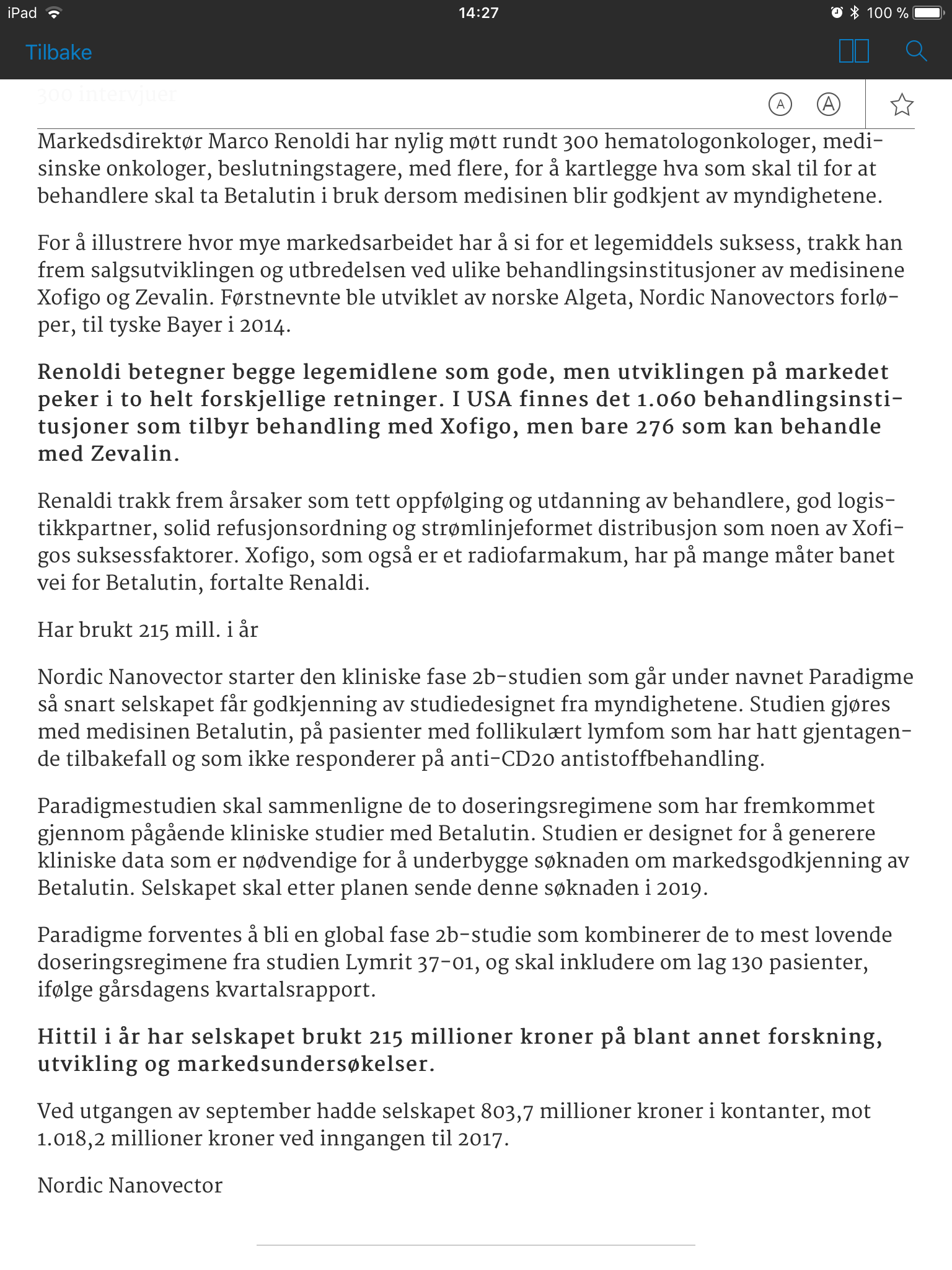 Jeg tror Nano lykkes, men jeg tror de møter mer motstand og at det gjerne blir en studie og to ekstra iforhold til de mest optimistiske her inne tror . Det gjør gjerne at ting tar 1-2 år lengre.