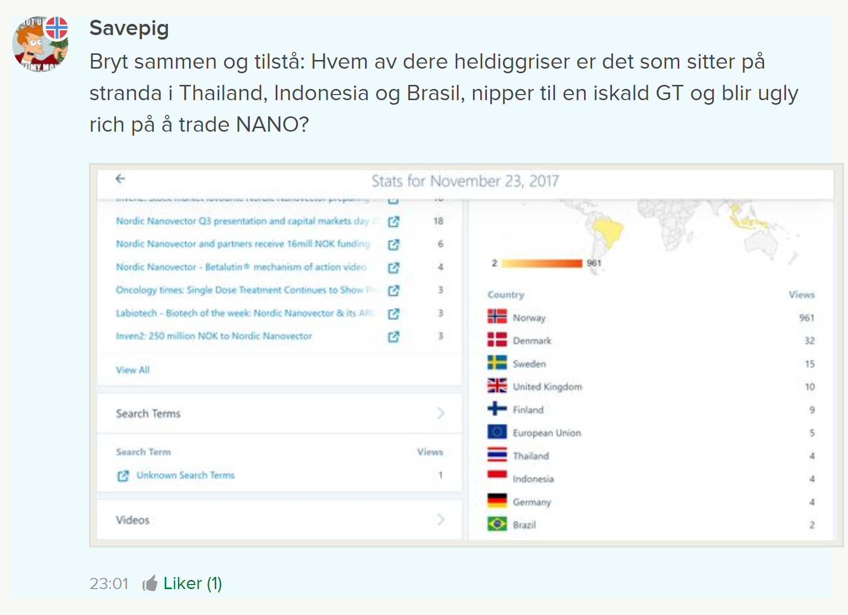 Vil ikke oppfordre noen på noe tidspunkt omtrent å ha en børstilnærming med ‘all in’, basert på min egen strategi og risikovillighet. Men dette er fort langt på siden av selskapet NANO som tråden handler om. =)