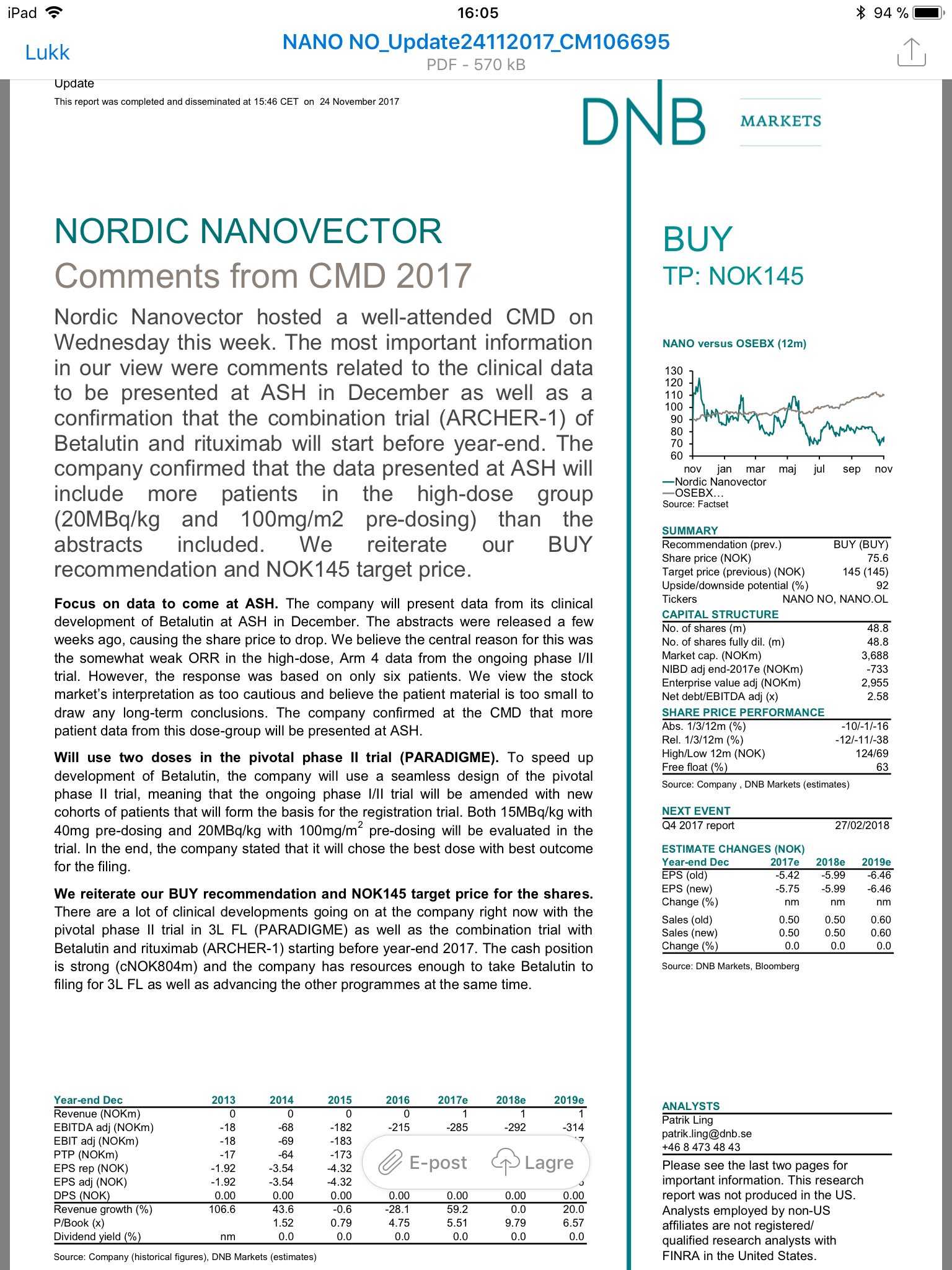 Patrik kommenterer at han synes det var litt rart at nano hadde CMD før ASH og det er nok grunnen tenker jeg. Han vil nok komme raskt på banen etter mer data foreligger