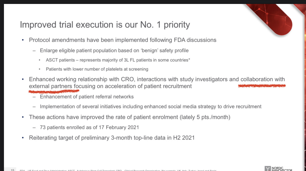 Ser over hva som er lovet i Q4 og konkluderer, for min del, med at data og beslutninger på hva som skal skje videre med Archer-1 og DLBCL er mye mer interessant enn om de har rekruttert 15 eller 20 siste kvartal.