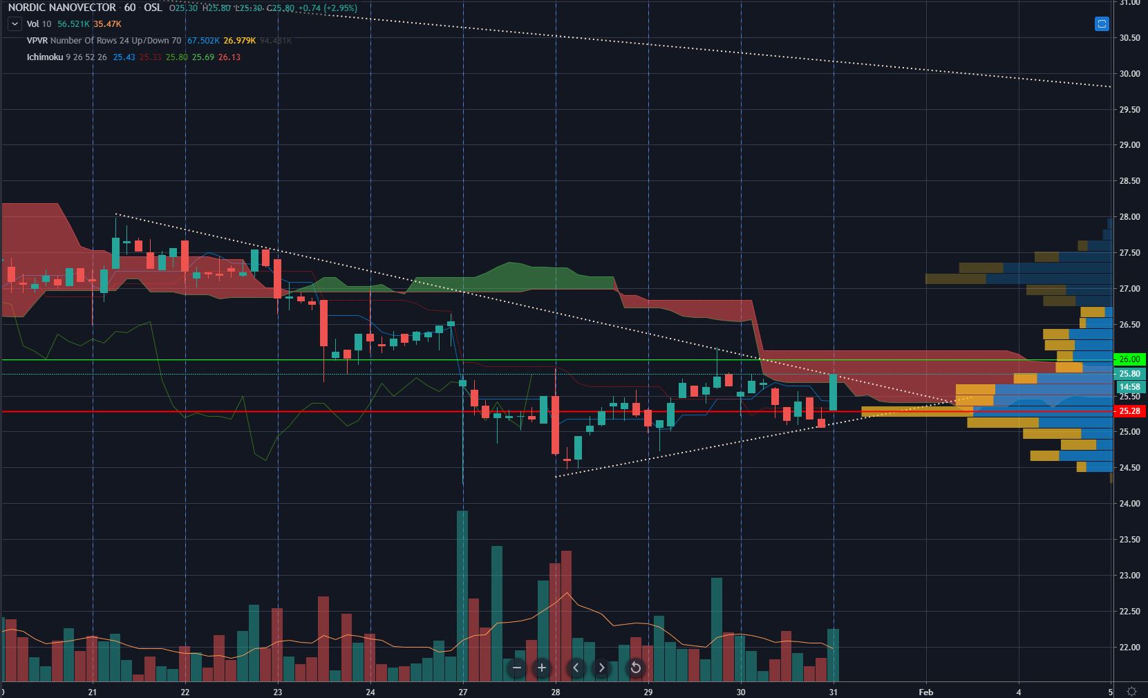 Brudd på en annen formasjon gir meg target endel under 20 kr, men mtp. volumet som er gått på 22-19.50 kr tror jeg det må noe ekstremt til (tox, utsettelse, etc.) for å knekke dette gulvet.
