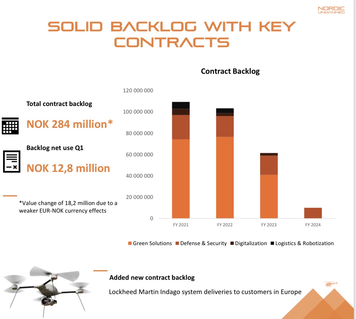 Nei er ikke så sykt når du tenker på det. Har en backlog på rundt 600 millioner nå dog fordelt over flere år, uansett: Poenget er nettopp at enkelte av kontraktene i denne industrien er helt oppe i milliardklassen. Så hvis de blir Europa/verdensledende i store deler av dronemarkedet, + lander flere av de største kontraktene er det absolutt mulig. Dette er de også i ferd med å bli. Målet er veldig hårete, men klarer de halvparten av det de guider vil vi fortsatt se kurser laangt høyere enn dagens…