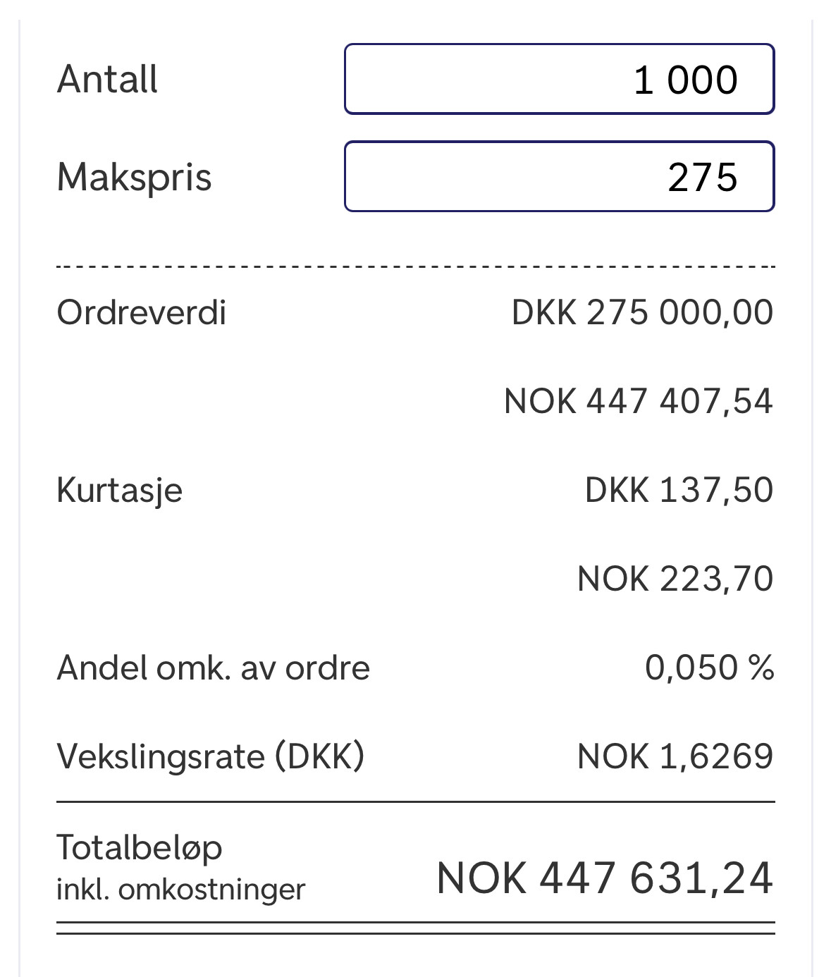 Jeg kjøpte 5x, er ikke så veldig fornuftig. 8% ned blir for fristende