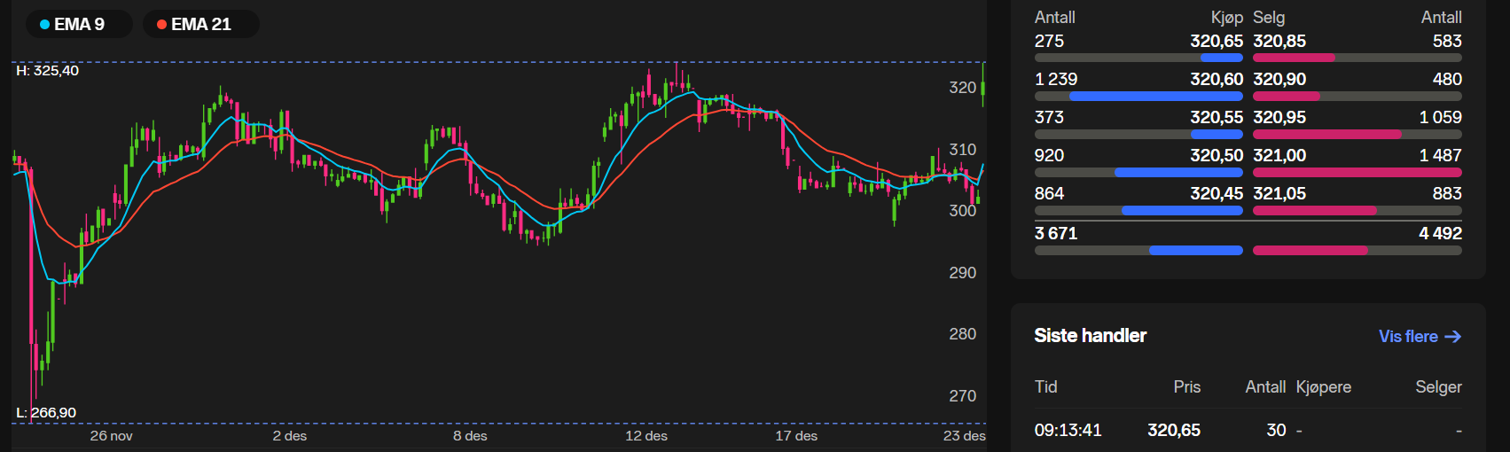 Er litt lættis at man har kunnet kjøpe til rundt 320 DKK nå på morran. Er ikke lenge siden (dager? uker?) Novo var der, uten noe oral sema-godkjenning. På en annen måte var dette nesten litt forutsigbart, gitt hvor absurd stor skuffelsen var over at 14mg oral sema (aka rybelsus) ikke virket i alzheimers (som jo alltid var en long shot av dimesjoner). Novo var nede på 269-ish da, og det var lett å gjøre relativt kontrollerte kjøp på 270-tallet den dagen. Sitter litt og lurer på hvor vi hadde vært kursmessig om FDA ikke hadde godkjent oral sema nå. 250? 240? 230? 220?
