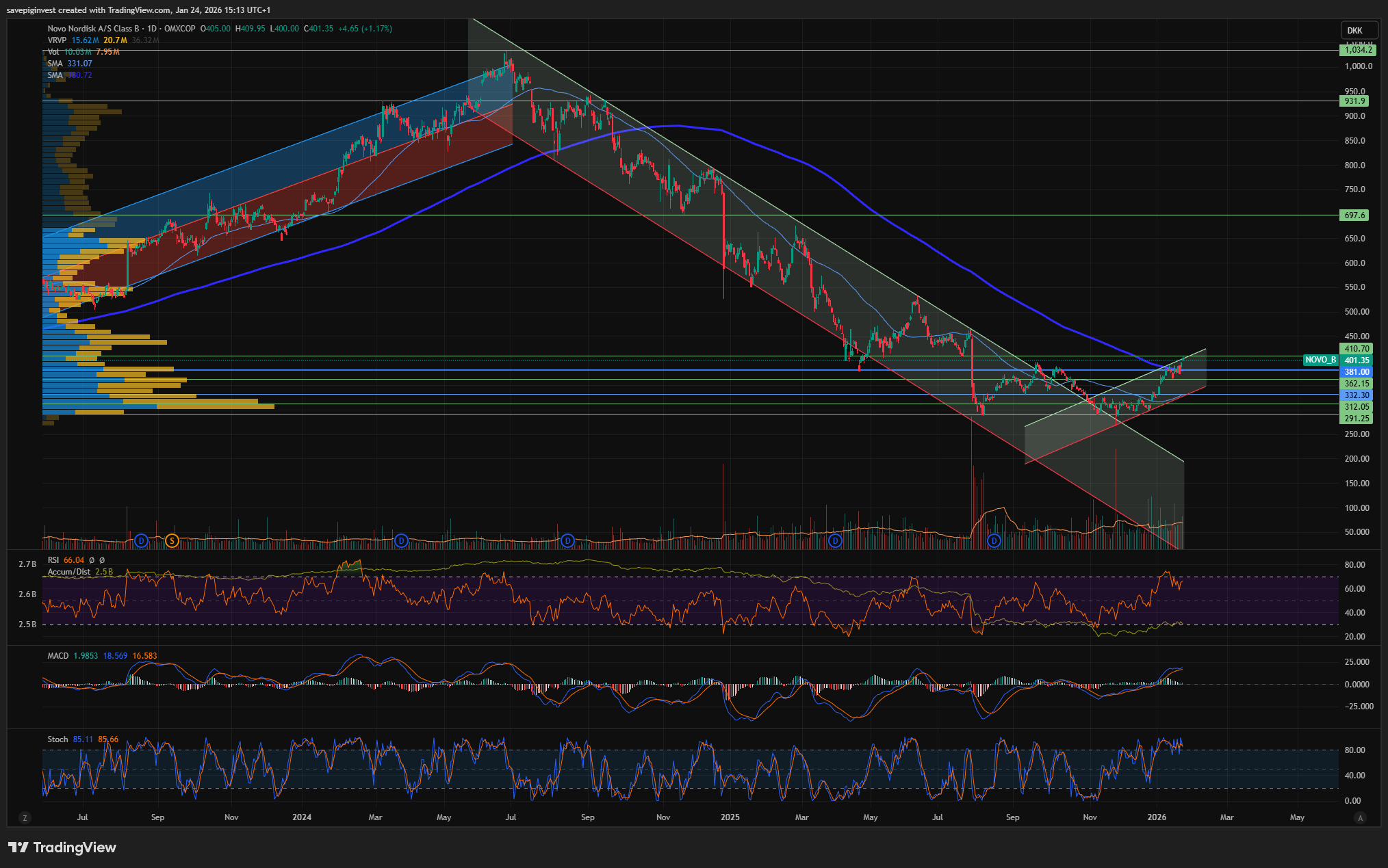 Sammelign med Genmab som jeg har holdt en stor posisjon i lenge nå, mye mer modent chart. Admittedly så kjenner jeg bedre til onkologi-spacet enn overvekt som jeg kun kjenner helt overfladisk: