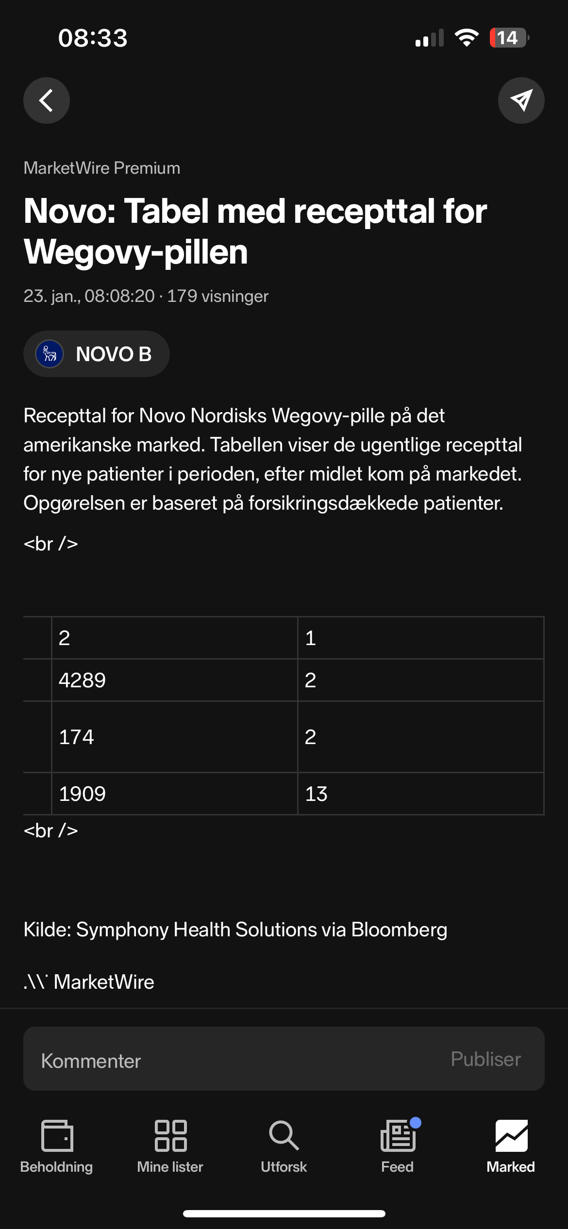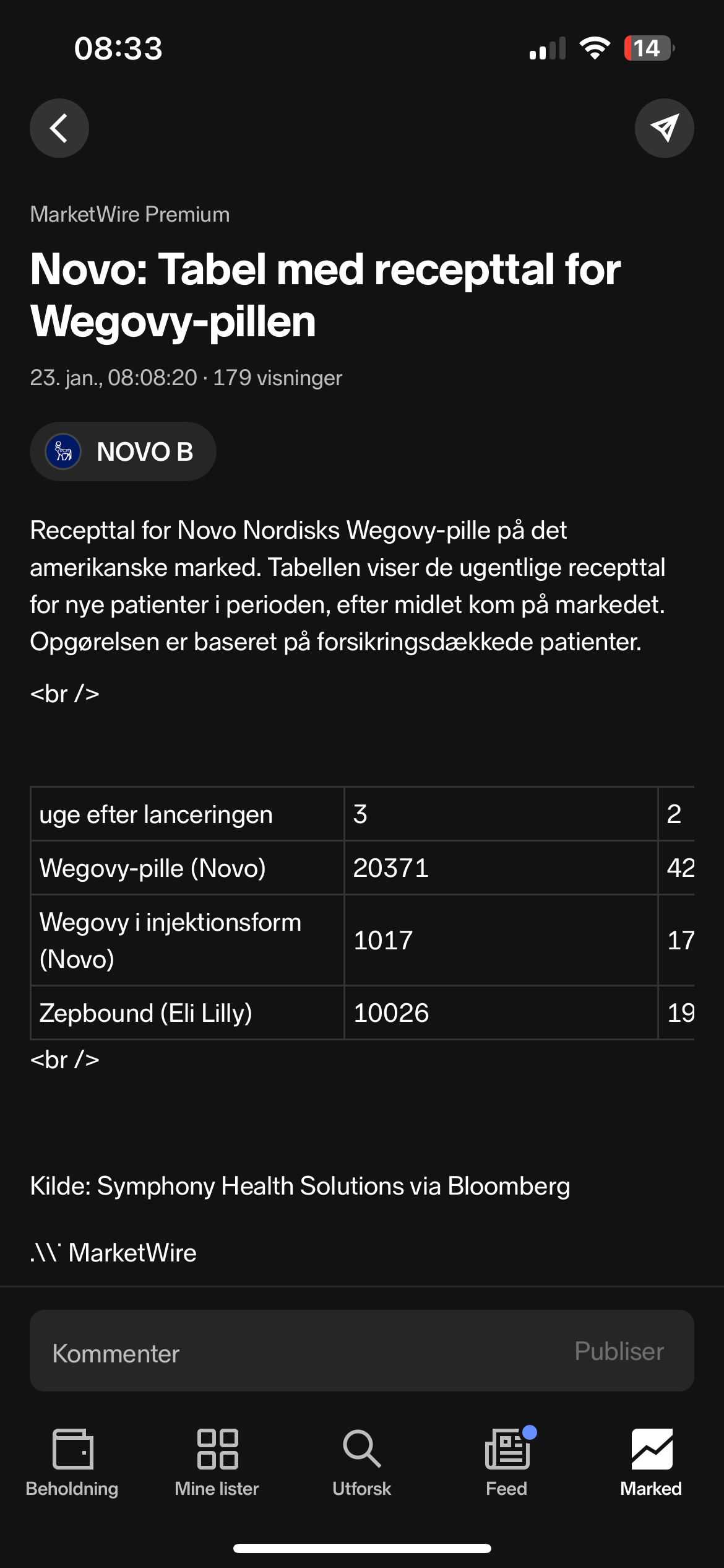 Spørs hva som teller mest. Den guidinga kan bli litt kaldvann. Samtidig er det mye optimisme rundt oral wegovy nå. Sentimentet rundt Novo virker å ha snudd, så kanskje selskapet tåler en nøktern (og forventet nøktern) guiding bedre nå enn nedjusteringene som kom i fjor. Da ramla Novo tidvis mye på ting den ikke skulle ramla på. Kan være de dagene er over. Vi får se.