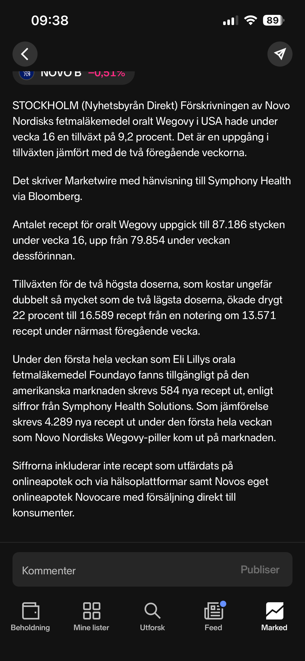 - Novo Nordisk expects to file for regulatory approval of a label expansion for Ozempic® pill and Rybelsus® in the US and EU in the second half of the year.