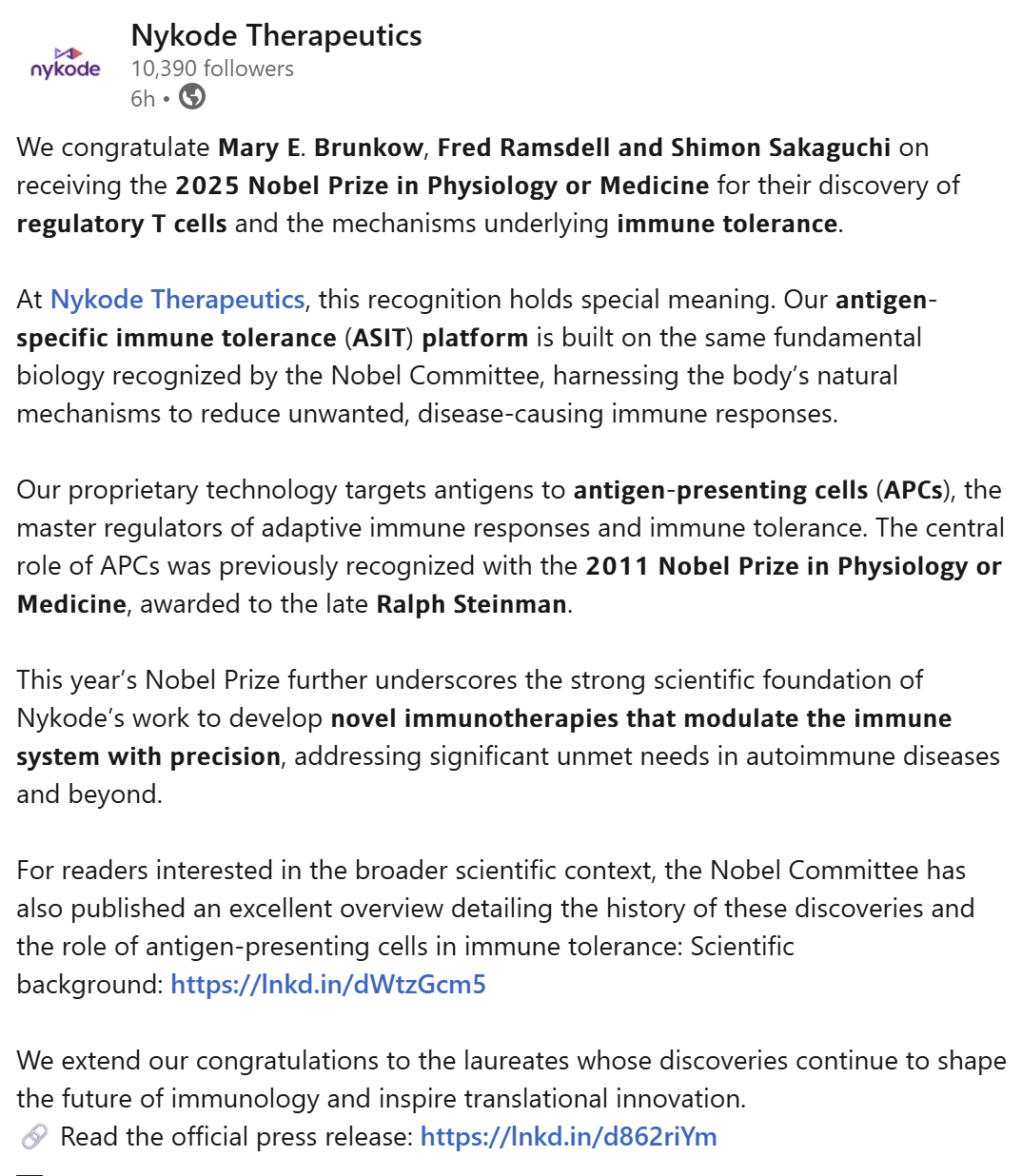 Har ikke konkret info. Men: De har jobbet i lab på teknologi og indikasjoner i over 2-3 år, med svært gode lab resultater. De har tidligere snakket om diabetes type 1 som aktuell første autoimmune lidelse. De sa ifm strategi oppdatering at de vil satse / investere mer (selv om runway er begrenset). For meg betyr dette penger til første test i klinikk og i mindre grad mer generell teknologi utvikling. Ko-investere med partner naturlig vei.
