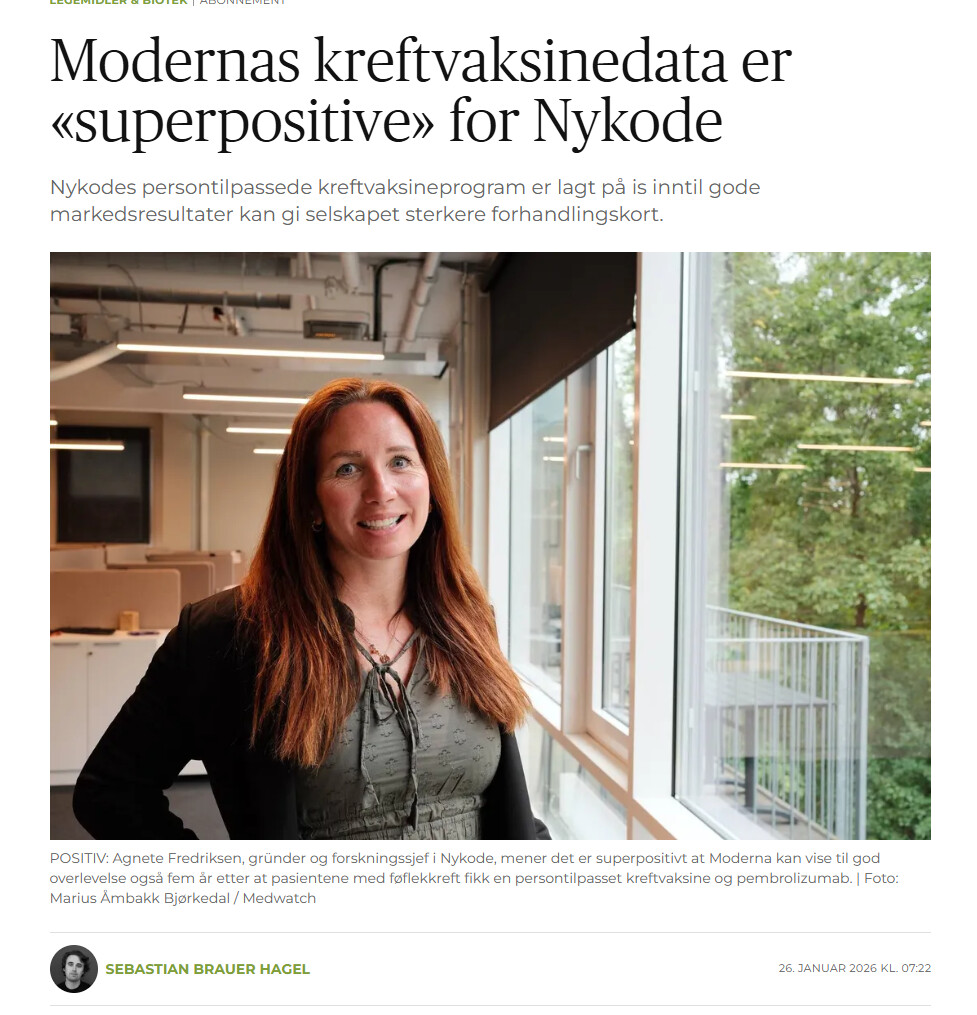 - Kristian Falnes AS er ikke lenger oppført som aksjonær i Nykode Therapeutics (NYKD).