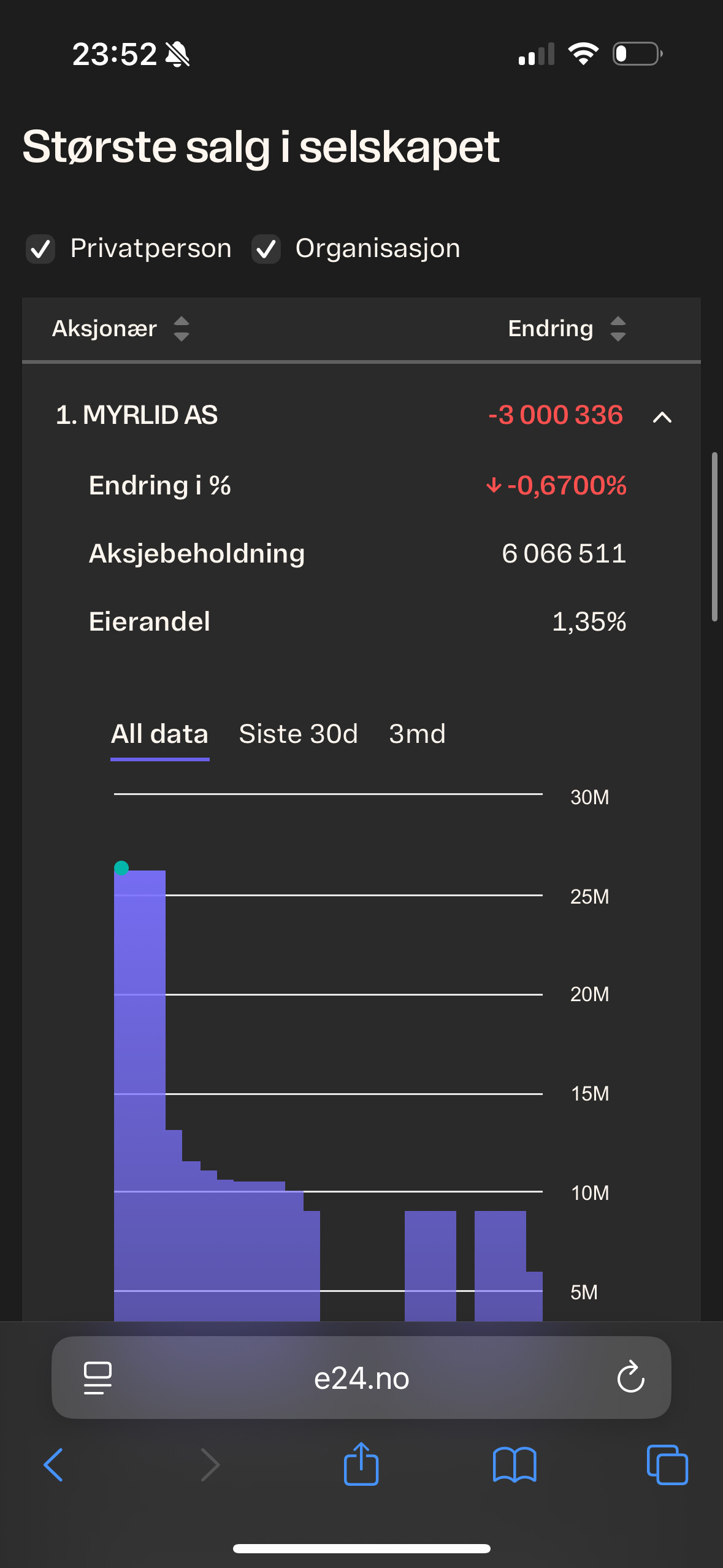 Men Myrlid eier vel halvparten av Jandersen som tilsynelatende økte med 1,5 millioner på siste?