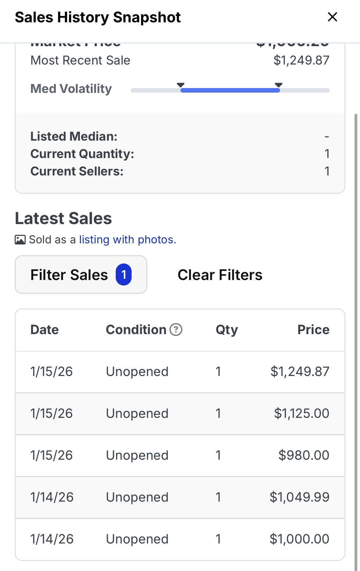 1000 dollar. Siste salg på 1050