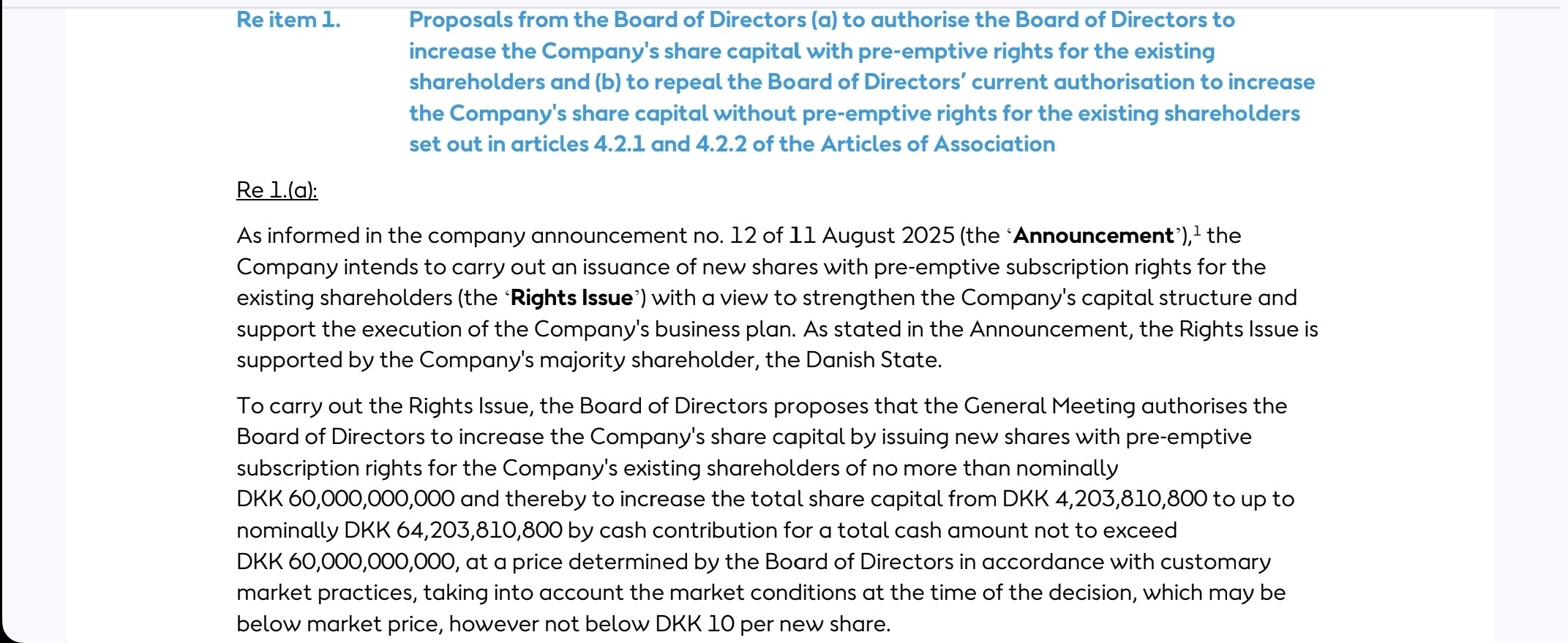 Equinor betalt 398 DKK, og har vel 10%, blir interessant å se om de blir med i emisjonen.