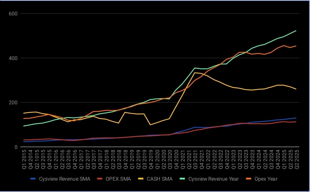 Her er 4 kvartals glidende snitt, og sum 4 siste kvartaler. Cysview revenue trenger å stige fortere, og opex trenger å holde seg mer eller mindre flatt: