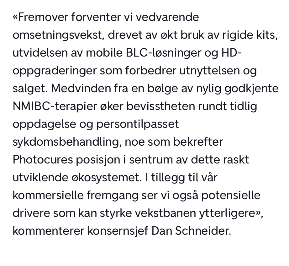 De forventer samme sterke vekst i usa som vi har sett siste kvartalene. Tror mange har oversett hvor sterk veksten er siden den måtte kompensere for bortfallet av flex (var ca 20% av total). Nå er flex mer eller mindre borte og all vekst blir netto. Jeg tror dette drukner litt (siden retails bare bryr seg om cevira og institusjoner ikke bryr seg om pho overhodet  ). Men sånn rundt 20% vekst med selskapets marginer gir raskt utslag nedover i tallene.