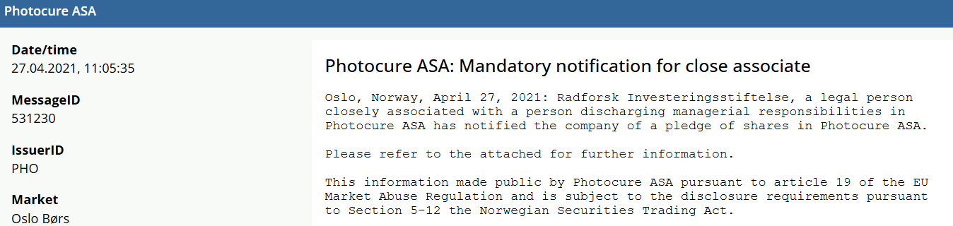 I mars 2024 solgte Radforsk seg helt ut av Photocure på omtrent samme kurs som dagens.