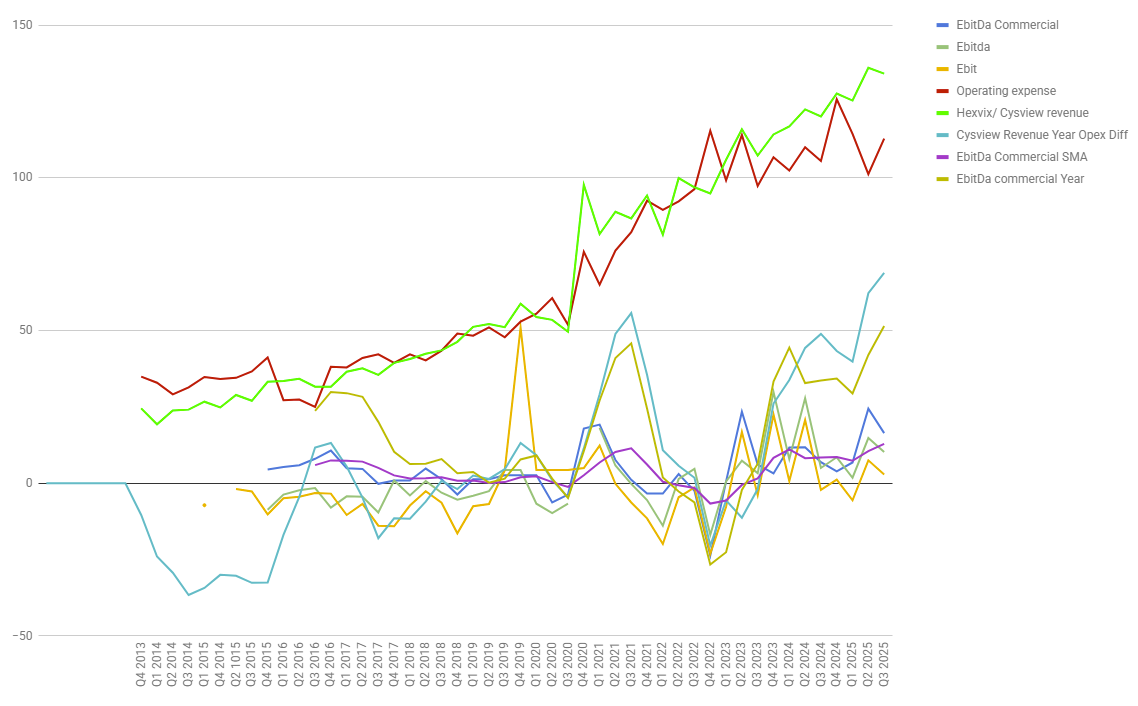 Så poenget mitt med posten er at vi trenger noen kvartaler til for å være sikker på at opex vekst har roet seg ned, for et par kvartaler siden var den ganske urovekkende. Grønn strek og rød strek må fortsette å vokse avstanden mellom seg.