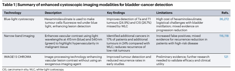 Optical enhancement techniques, including fluorescence-guided cystoscopy, improve tumour detection and completeness of resection compared with white light alone