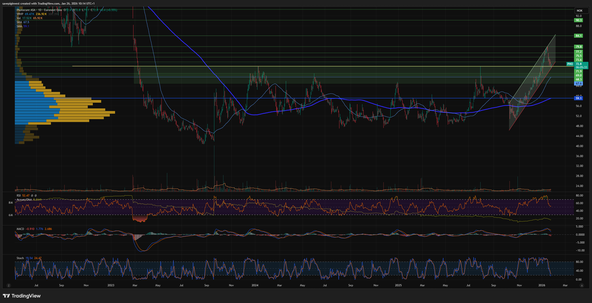 For min del var det påfallende hvor lite kjøpere som kom inn da den brøt opp over 72, for meg sier det noe om hvor totalt avskremt oslo børs er fra norsk biotech. Ultimovacs, Nykode og Oncoinvent ble nok en perfect trifecta av spikre i kisten.