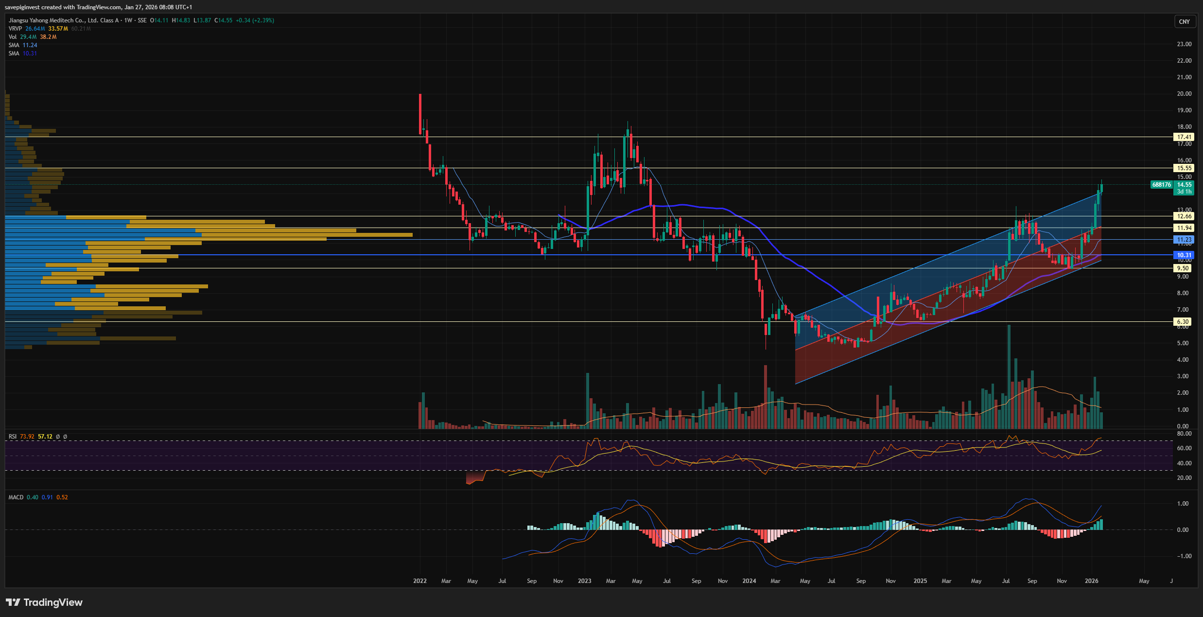 Asieris over ca 12,6 er over den store volumprofilen, så nå er det mange kinesiske investorer som sitter “in the money” etter de siste årene: