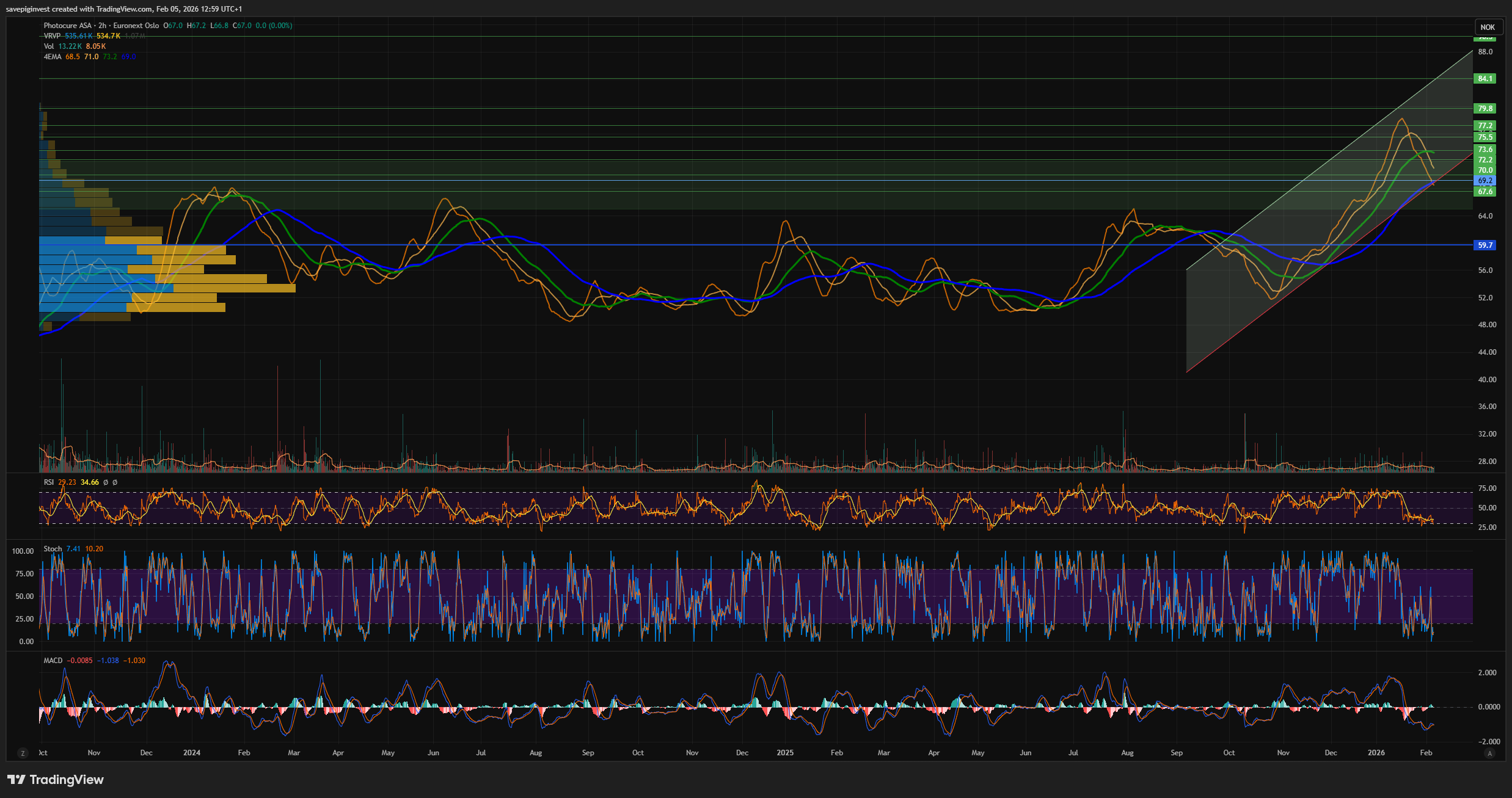 Det er nok en del som kun handler pÄ basis av TA, og som gir blaffen i fundamentale faktorer. Men jeg har vanskelig for Ä tro at den gjengen skal bidra sterkere til kursutvikling i den fase som Photocure er i nÄ. De som tror pÄ Cevira godkjenning, vil vel se pÄ et nivÄ under 65 som en meget rimelig og fristende inngang for et Cevira bet?