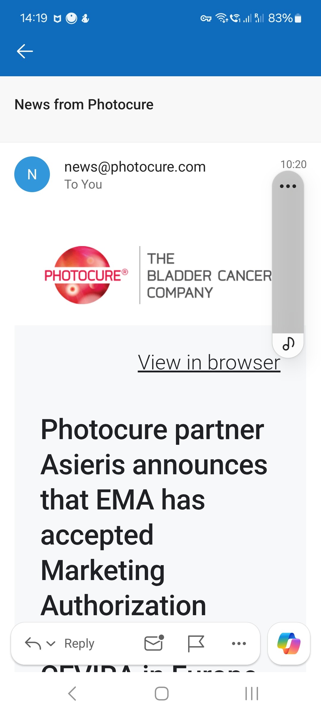 Photocure may also receive milestones of up to USD 31.0 million for