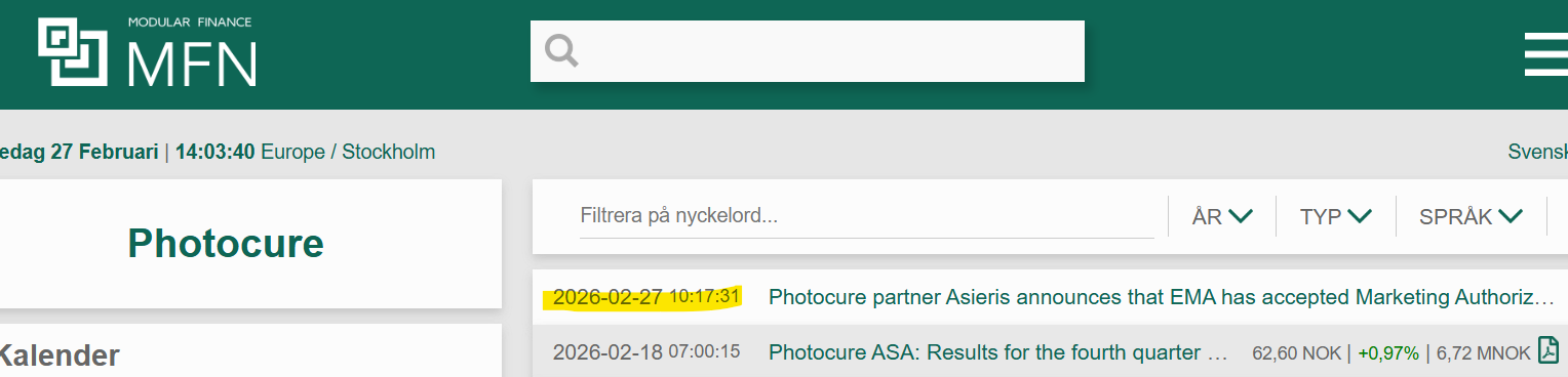Jeg trodde ikke EMA bare skulle si “kjør på” - og at det var derfor det drøyde litt med mer informasjon om progresjon i EU. Kan neppe ha vært alene om det. Så dette er en ekte god nyhet og gjør det mye hyggeligere å være long.