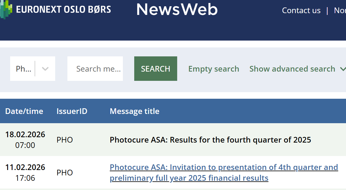 Fra en tidligere korrespondanse med forhenværende IR i Photocure: