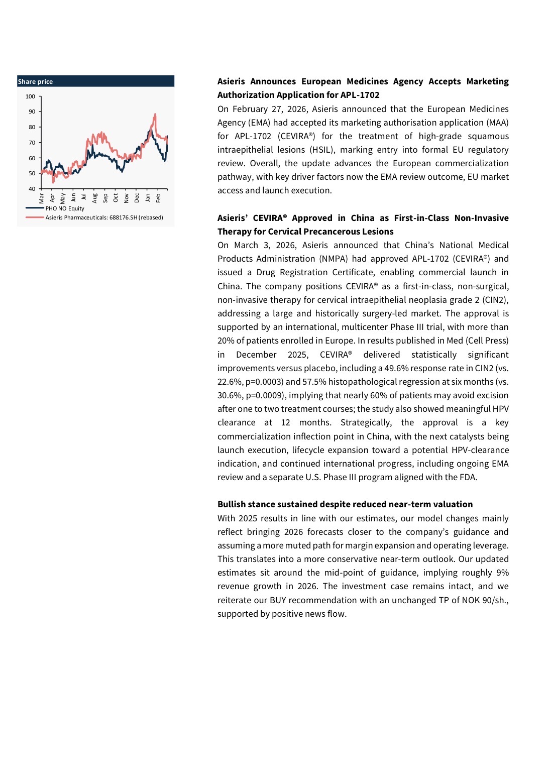 - Pris og refusjon: Asieris gjennomfĂžrer nĂ„ omfattende studier pĂ„ âsykdomsbyrdeâ for Ă„ overbevise myndighetene om at Cevira sparer samfunnet for store summer sammenlignet med kirurgi og sykehusinnleggelser. Dette er nĂžkkelen for Ă„ fĂ„ produktet inn i den nasjonale sykeforsikringen (NRDL), som vil gi eksplosiv volumvekst.