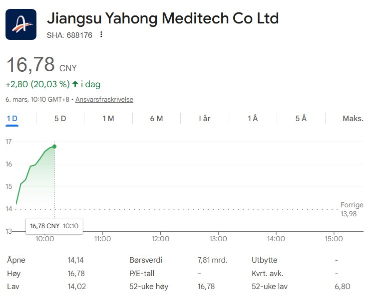 Snaue 60m aksjer omsatt. Fortsetter opp noen milliarder i dag ogsĂ„. De virker Ă„ ha mer troa i Kinađ