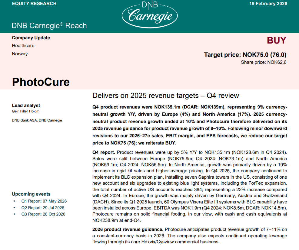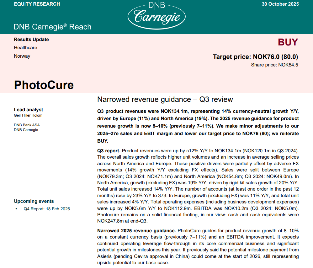 While we do not include future potential milestone payments in our estimates (to avoid speculating on the degree of likelihood), we find it possible that Photocure could benefit from milestone payments from Asieris, representing upside potential