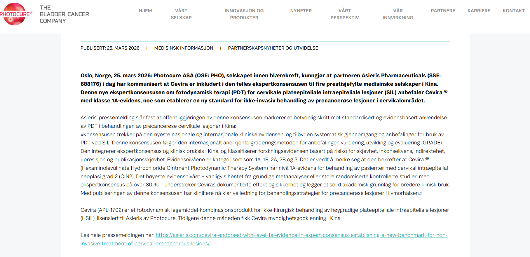 https://photocure.com/news/asieris-cevira-endorsed-with-level-1a-evidence-in-expert-consensus-119