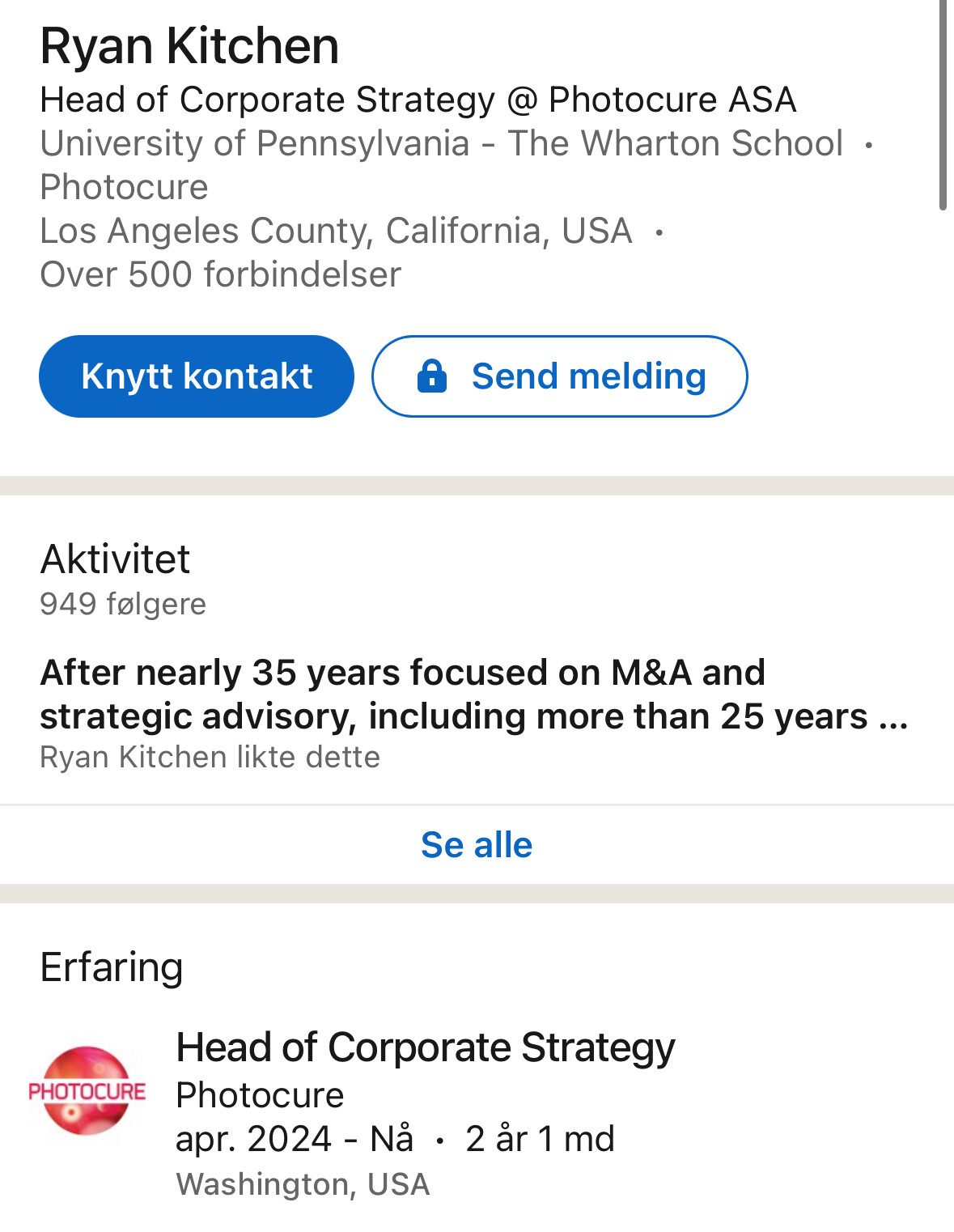 Lurer på hva som hadde skjedd om noen med store muskler, masse makt og tungt nettverk tok over selskapet. Må jo være fristende å prøve med de marginene Photocure har.