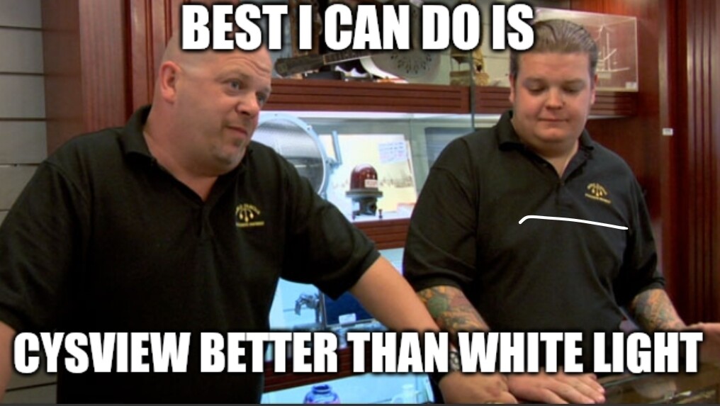NĂ„ er det Ăžrtentede vi hĂžrer om hvor suveren Cysview/Hexvix er. Nyheter vi gjerne skulle hĂžrt, enten er langt unna eller blir underkommunisert.