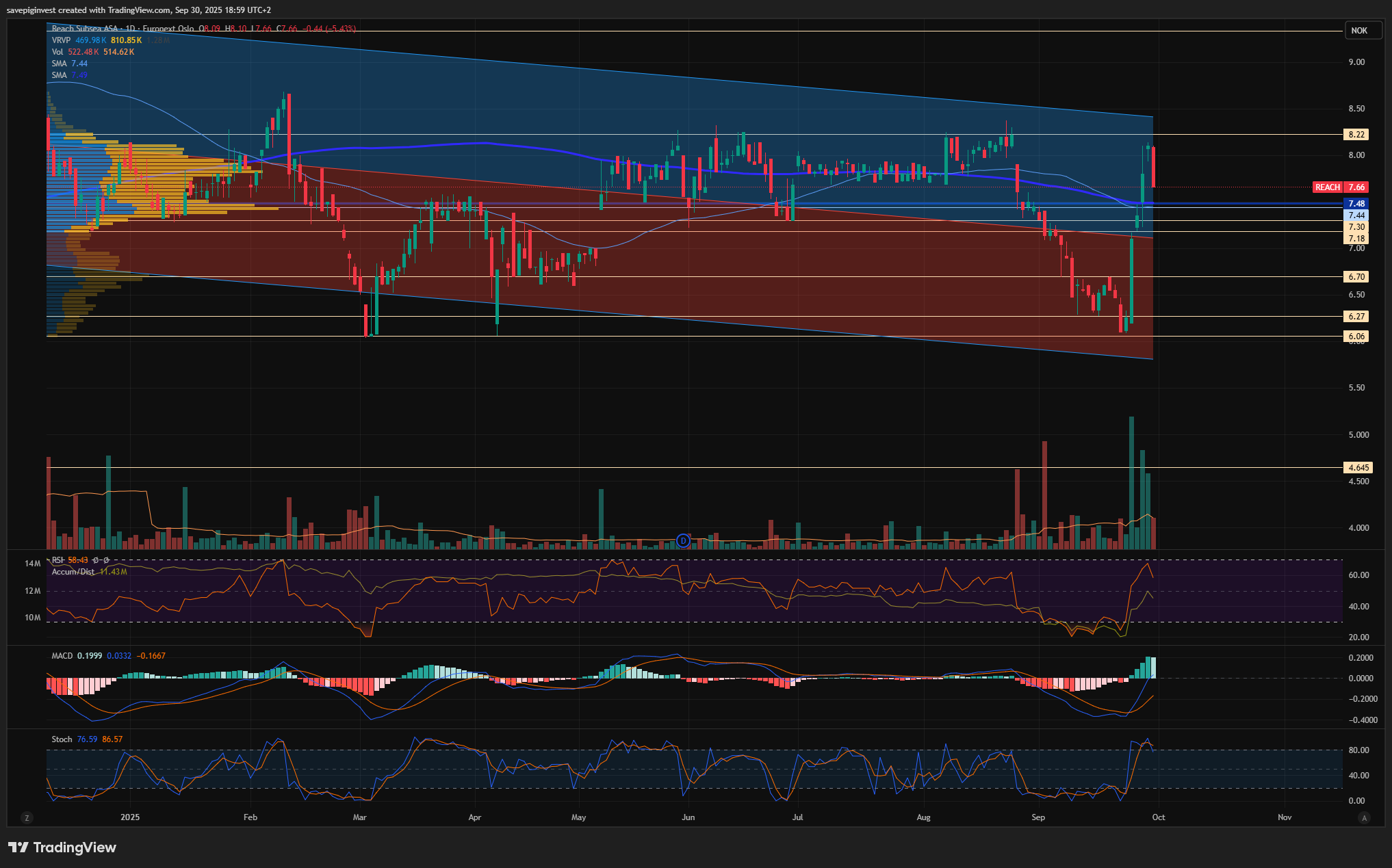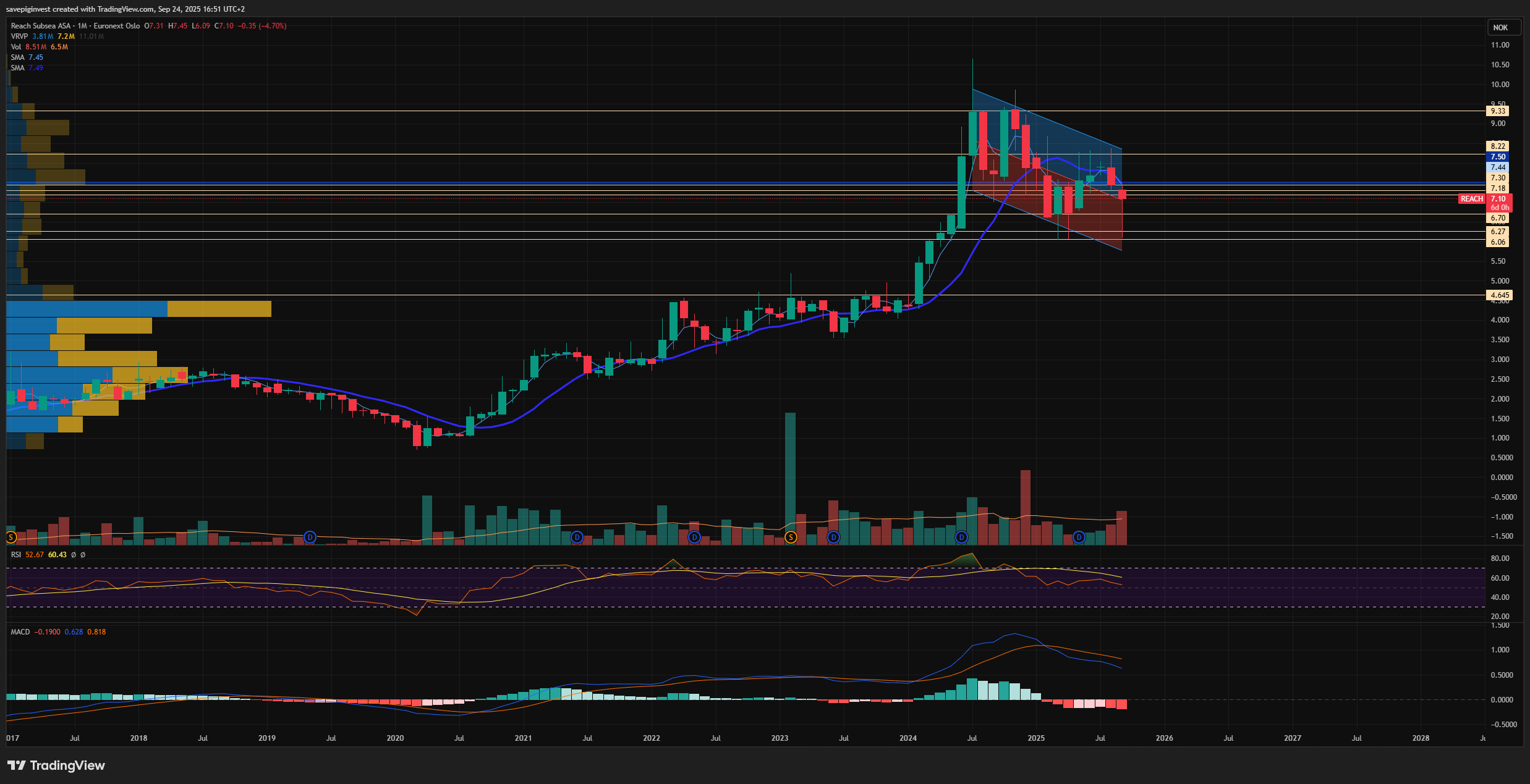 Ca 8,2 begynner å skille seg ut som et veldig viktig motstandsnivå oppover