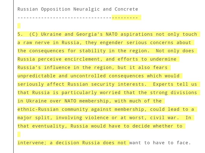 Når Putin er den absolutte ubestridte herskeren av Russland og man ender opp i en situasjon der han bare omringes av ja-mennesker som ikke våger å si han i mot så er det en oppskrift på en katastrofe. Etter over 20 år med denne dysfunksjonelle situasjonen er Putin nå 69 år og da har han allerede hatt minst 9 år med kognitiv nedgang og han har gått å dyrket ideer om et nytt gjenforent og storslagent Russland. Uavhengig av NATO hadde nok Putin sett mot Ukraina som noe som burde vært en del av Russland og handlet deretter. Et demokratisk Ukraina hadde fort sett mot EU uavhengig av NATO situasjonen i Europa og da hadde det smelt fordi da ville ikke Ukraina vært en vasallstat av Russland lengre.