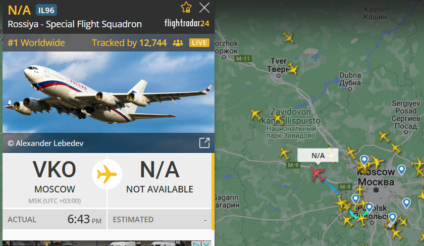 Edit: Forsvant visst fra flightradar rett før Valdai gitt