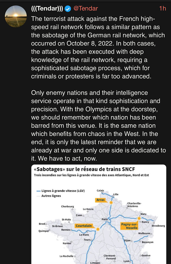 Vet ikke helt hvor mye Russland har å tjene på å ta ut TGV-nettverket? Utelukker ikke at det er dem, men det finnes altså andre mulige suspekte.