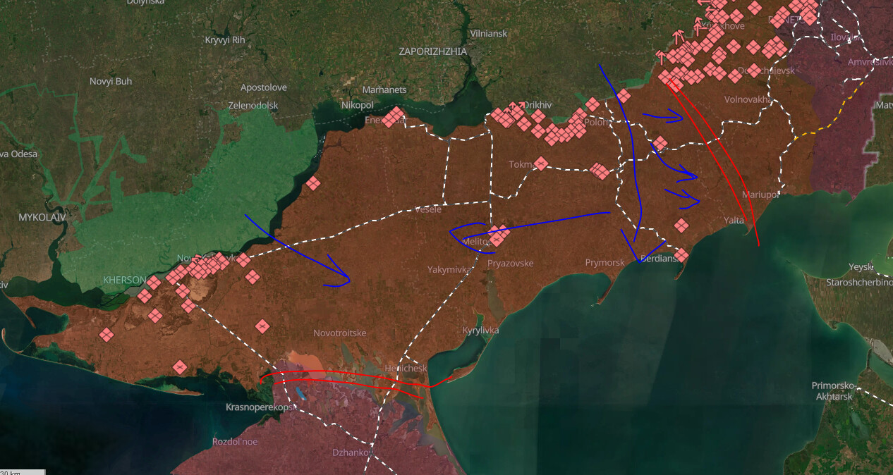 Hvorfor i sør? Jo, for Russland kan ikke bare å trekke seg tilbake, de møter Azov-havet. Et gjennombrudd her vil kunne kutte den forsyningslinjen og gjør det mulig for Ukraina å presse Russland ut av store deler av Zaporizhia og resten av Kherson.