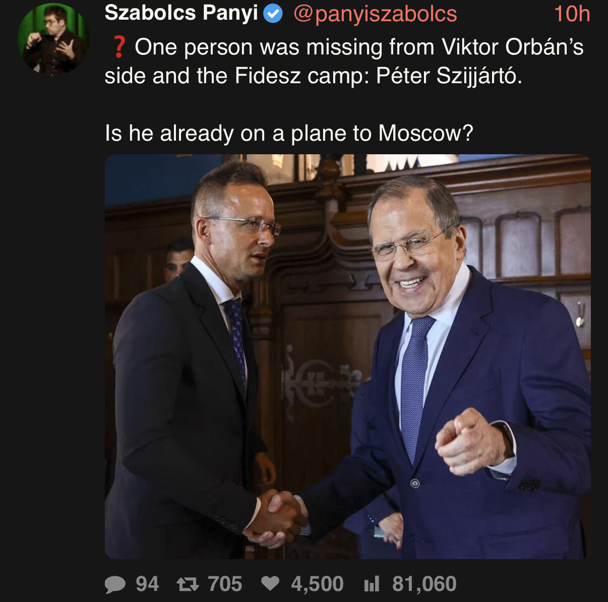 Det fungerte for Russland i Georgia. Vi bør likevel ikke undervurdere den sterke antirussiske stemningen i Ungarn nå. De har lenge levd under forhold med fellestrekk til det Georgian Dream lurte sitt land inn i. Jeg tror det vil være vanskelig å trikse til noe i Ungarn nå.