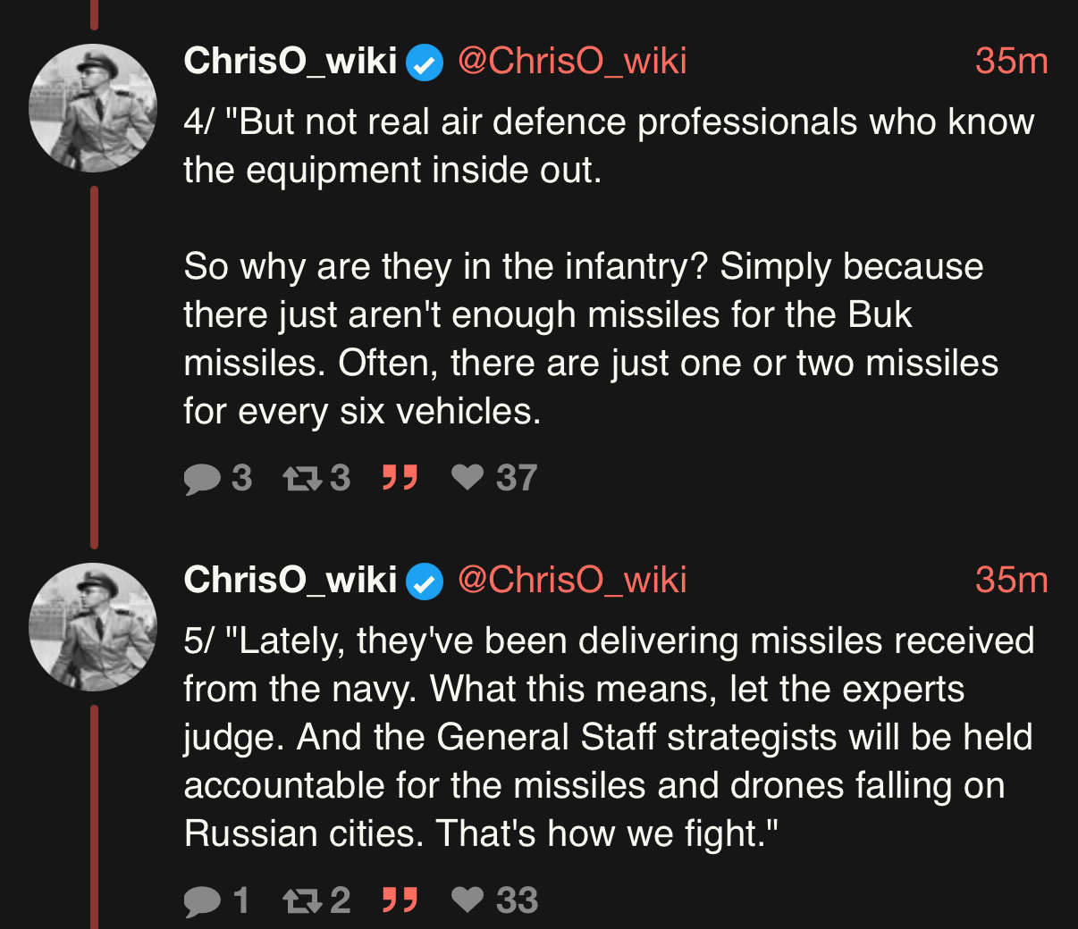 Spørsmålet er jo om det faktisk stemmer, at russisk luftforsvar er på randen av sammenbrudd. Her tenker jeg resultatene vil tale sannheten.