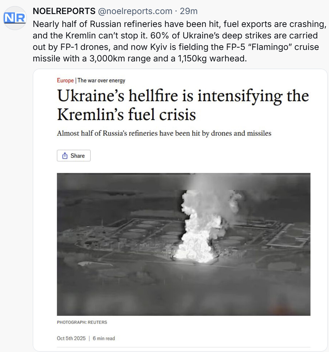Ikke akkurat hot lesing, men samtidig, på den økonomiske siden, så virker det ikke som at analysen ser for seg at Ukraina kan fortsette å ta ut russisk raffinerikapasitet eller annen kritisk oljeinfrastruktur og på den måte påvirke russisk økonomi