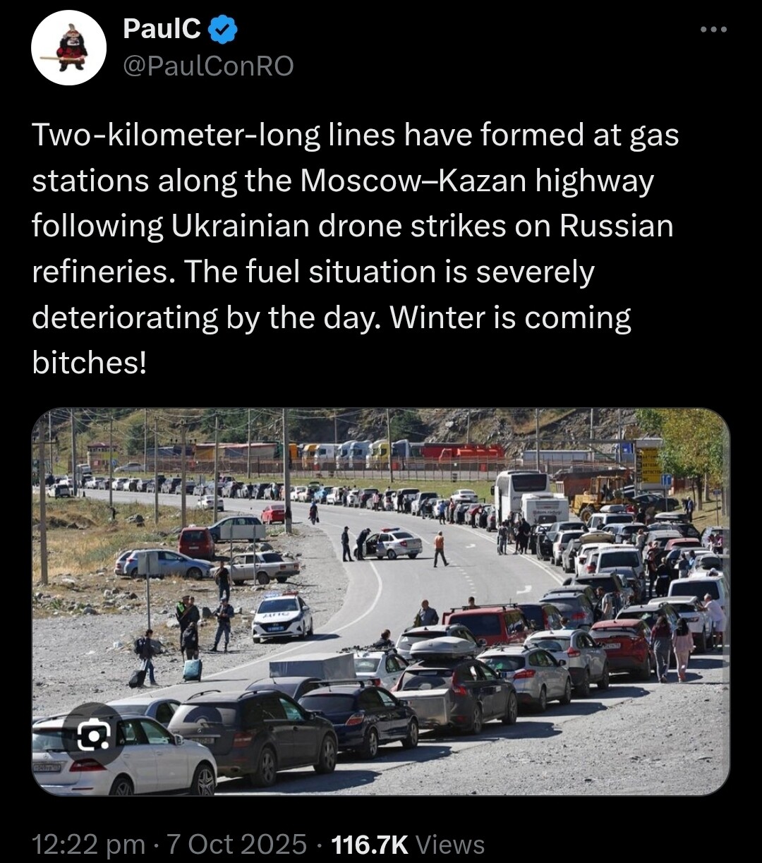 Min gjett er at bensin rasjonering i stor skala er neste om Ukraina klarer å holde oppe trykket.
