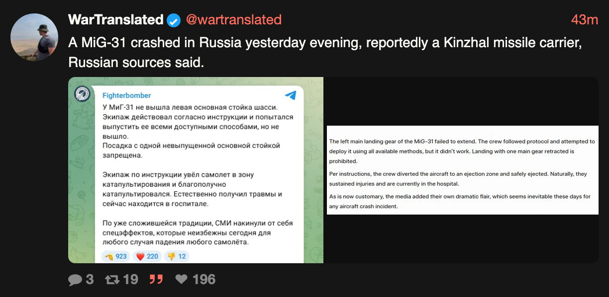 Russland har mistet mye flere fly enn jeg trodde, 141 totalt. Ser ut som 2025 kan bli deres verste år etter 2022. Var ikke så kjapt å se hva som var ulykker.
