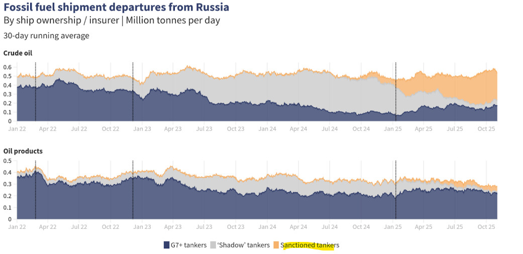 Det er både miljømessig og økonomisk riktig, å få ned Shadow fleet bruken, så kan en jo spørre seg hvor man måtte vente til 2025 for å få til det…, ut i krigens 3. år.