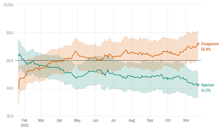 Fra mai-midten av oktober, så har det vært relativt flat utvikling, men etter det har approval ratingen falt ganske markant.