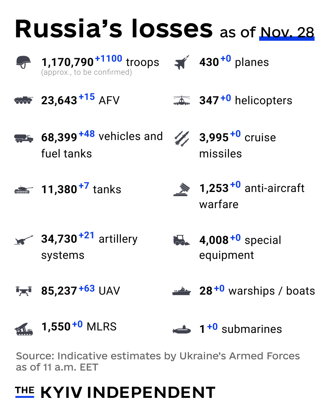 Noterer ellers at det meldes om ganske store tap av folk og materiell i går:
